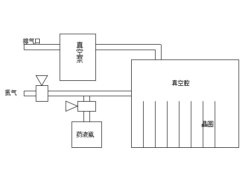 Zunächst wird die Vakuumpumpe eingeschaltet, um mit dem Vakuumieren zu beginnen. Sobald das Vakuumniveau in der Kammer den eingestellten Wert erreicht (dieser Wert kann durch Ändern des P2-Werts am Vakuummeter eingestellt werden, siehe Handbuch des Vakuummeters), wird Stickstoff eingeleitet. Nach Erreichen des eingestellten Vakuumniveaus (dieser Wert kann durch Ändern des P1-Werts am Vakuummeter eingestellt werden) wird der Vakuum- und Stickstoffeinleitungsvorgang wiederholt. Nach Erreichen der eingestellten Anzahl an Stickstoffeinleitungen beginnt das Vakuumieren erneut, gefolgt von der Einleitung der chemischen Lösung. Nach Ablauf der eingestellten Zeit wird die Zugabe der chemischen Lösung beendet und die Haltephase beginnt. Nach der eingestellten Haltezeit beginnen das Vakuumieren und die Stickstoffeinleitung erneut für die eingestellte Anzahl an Zyklen. Sobald das System den Vorgang automatisch abschließt, ertönt ein akustischer und optischer Alarm, der anzeigt, dass die Wafer zur Entnahme bereit sind.