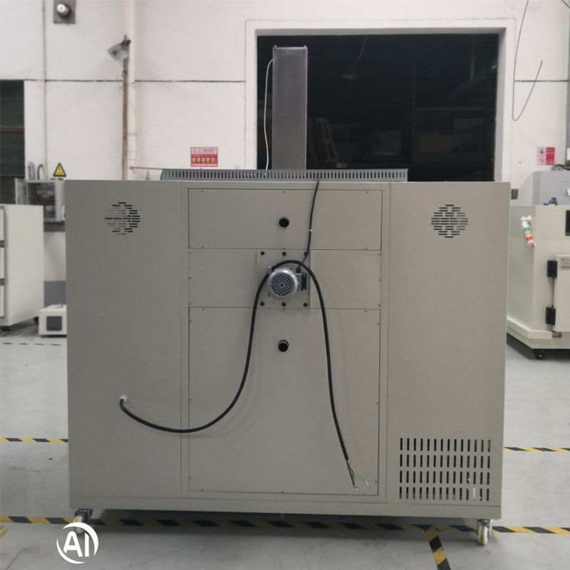 2.1. Diese Testkammer zum Eintauchen in Salzlösungen ist mit einer oberen Trockenkammer und einem unteren Salzlösungstank ausgestattet. Die Trenntür öffnet sich automatisch, um die Trockenheit aufrechtzuerhalten und die Anforderungen des Tauchtests zu erfüllen, wodurch eine unabhängige Temperatur- und Feuchtigkeitskontrolle in beiden Kammern gewährleistet wird. Die Innenkammer ist aus 1,2 mm dickem Material gefertigt, um die Korrosionsbeständigkeit der Arbeitskammer zu verbessern. Das Außengehäuse besteht aus 1,5 mm dickem Kohlenstoffstahlblech mit spritzbeschichteter Oberfläche. Ultrafeine Isolierung aus Keramikfaserwolle füllt den Hohlraum zwischen der Innenkammer und dem Außengehäuse zur Wärmespeicherung. Sowohl die Türen der Trockenkammer als auch der Salztauchkammer sind als Linksanschlag konzipiert, um eine bequeme Entnahme und Einfügung der Proben zu ermöglichen. Türrahmen sind mit hoch-/niedrigtemperaturbeständigen Dichtungen ausgestattet und verfügen über großflächige, gehärtete, doppelt verglaste Sichtfenster für Echtzeitbeobachtungen. Edelstahlgriffe erhöhen die Korrosionsbeständigkeit. Salztauchlösungsbehälter bestehen aus Edelstahl 316L mit innerer/äußerer PTFE-Beschichtung.