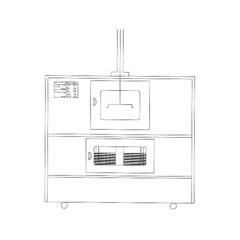 2.2. Für die abwechselnde Prüfung von Proben zwischen oberen und unteren Kammern hebt und senkt eine auf dem Trockenofen montierte elektrische Schubstange die Proben. Das aus Edelstahl 316L gefertigte Probengestell bietet Platz für sechs Proben. Eine elektrisch betriebene Trenntür zwischen Trockenofen und Salztauchkammer öffnet und schließt sich automatisch entsprechend dem Versuchsablauf, mit zusätzlichen manuellen Überbrückungstasten für den vorübergehenden Betrieb.